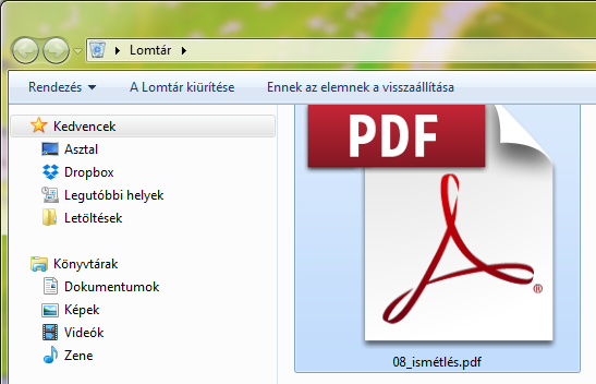 Ha egy fájl feleslegessé válik, (miután kijelölted) egyszerűen törölheted a Delete gombbal. Ilyenkor a fájl a helyéről véglegesen törölve lesz, és a Lomtárba kerül.